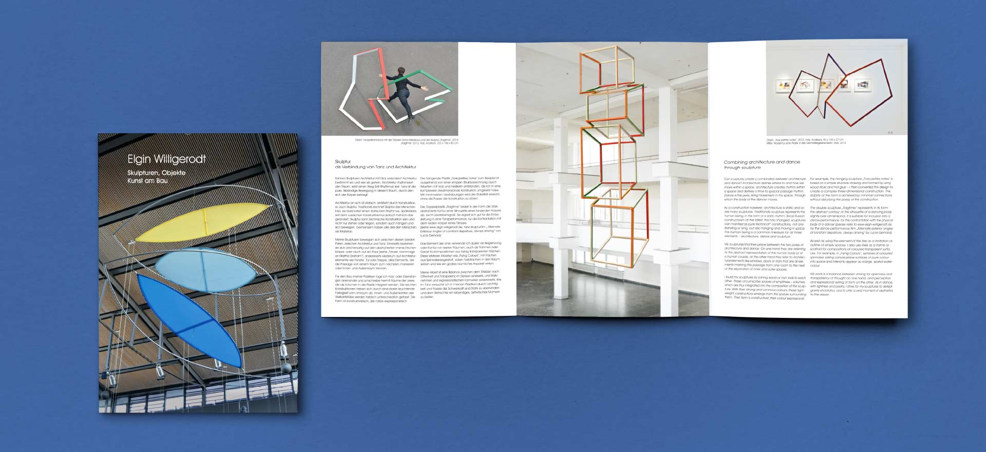 »Die Formensprache der Skulpturen von Elgin Willigerodt wird in der Typografie aufgegriffen. Es entsteht ein Spiel aus Diagonalen und Dreiecken.«